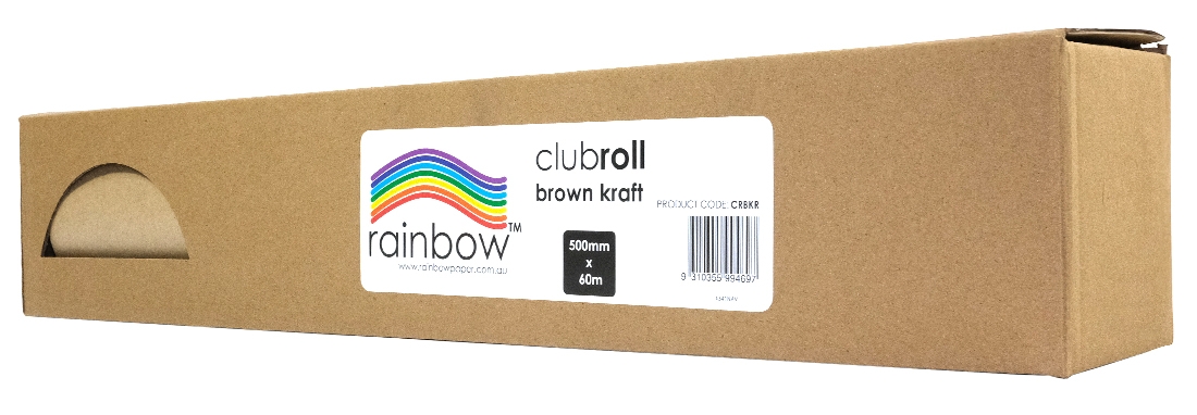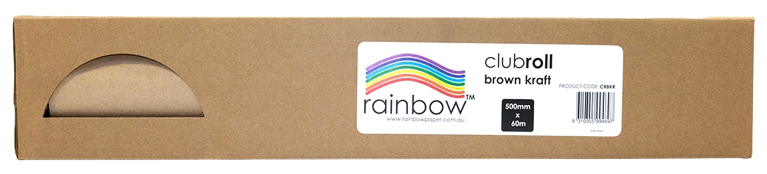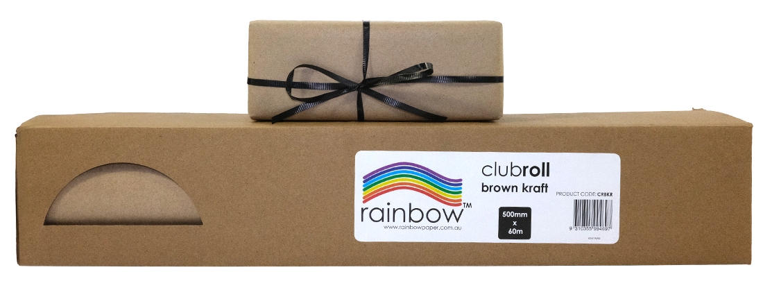 Rainbow Club Rolls are a 80gsm 500mm X 60m wrapping paper with a 38mm core. Each Rainbow Club Roll (except White colour) comes with its own dispenser box. Custom printing is also available.